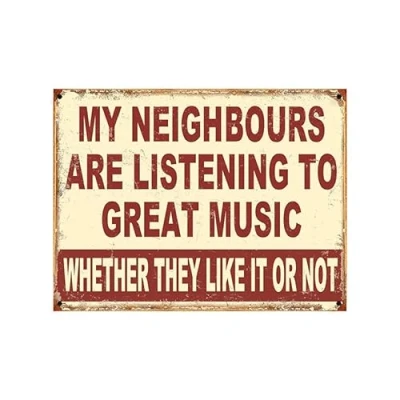 My Neighbours Listen To Great Music Theme Retro style metal tin sign/plaque (10" x 8")