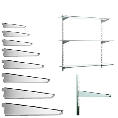 My Shopfittings Twin Slot Shelving White OR Chrome Uprights, Brackets Adjustable Strong Rack Wall Shelf Pack of 10 (CHROME, 17CM 170MM)