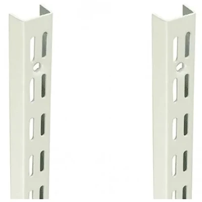 My Shopfittings Pack of 2 x 198cm Twin Slot Shelving White Uprights, Adjustable Strong Rack WHITE, 198CM PACK OF 2 UPRIGHT (PAIR) COMPATIBLE - Our 32 mm pitch twin slot range is designed to be compatible with most twin slot systems allowing you to extend your existing storage, or giving you flexibility to expand in the future. ADJUSTABLE - The twin slot system makes adjusting your shelves quick and easy. Shelves can be set to any height allowing you store products of various sizes, and changed to a new height whenever you need. DURABLE - The steel construction and high load capacity make our twin slot range extremely hard-wearing. Ideal for commercial use in offices, retail, schools and libraries or for home use in the living room, office or bedroom.upright 430mm, 710mm, 1000mm, 1600mm, 1980mm, 2400mm Long Twin Slot Wall Fixed Uprights For Use With 32mm Twin Slot Brackets, . Shelf brackets are available in 120mm, 170mm, 220mm, 270mm, 320mm, 470mm & 610mm lengths The maximum load for brackets: 120mm = 151kg 170mm = 108kg 220mm = 84kg 270mm = 69kg 320mm = 60kg 370mm = 57kg 470mm = 80kg 610mm = 74kg