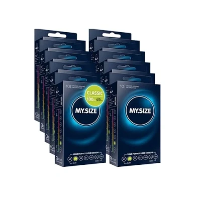 FIT SIZE FOR EVERYONE: Average adé! MySize thinks it's about time that the fit for clothing the most sensitive part of the body is uncompromisingly adapted to the man. For safety AND pleasure. NATURALLY ALLERGEN- AND SMOOTH-FREE: The minimal wall thickness of 0.07 mm is particularly thin and therefore intense and true to touch. Highly pure natural rubber latex ensures less allergens and odour. SUSTAINABLE AND VEGAN: MY.SIZE is manufactured using only products that are free from animal ingredients and have not been tested on animals. UNCOMPROMISINGLY PERFECT FIT: Bye-bye condom mishaps! The condom width, which can be adjusted to male individuality, reduces the amount of force and contact with fingernails when putting it on. THE DEAL: MY.SIZE condom 100 condoms in 10 boxes of 10 condoms, width 49mm, 100 pieces. Available in other nominal widths. CE marked. According to EU directive for medical devices 93/42 EWG.