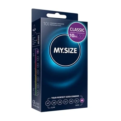 FIT SIZE FOR EVERYONE: Average adé! MySize thinks it's about time that the fit for clothing the most sensitive part of the body is uncompromisingly adapted to the man. For safety AND pleasure. NATURALLY ALLERGEN- AND SMOOTH-FREE: The minimal wall thickness of 0.07 mm is particularly thin and therefore intense and true to touch. Highly pure natural rubber latex ensures less allergens and odour. SUSTAINABLE AND VEGAN: MY.SIZE is manufactured using only products that are free from animal ingredients and have not been tested on animals. UNCOMPROMISINGLY PERFECT FIT: Bye-bye condom mishaps! The condom width, which can be adjusted to male individuality, reduces the amount of force and contact with fingernails when putting it on. THE DEAL: MY.SIZE condom, width 69mm, 10 pieces. Available in other nominal widths. CE marked. According to EU directive for medical devices 93/42 EWG. With free online measuring app.