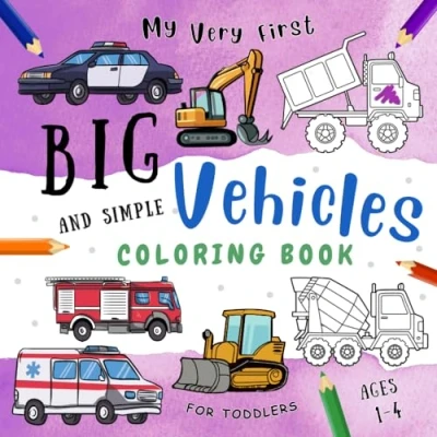 My Very First Big and Simple Vehicles Coloring Book For Toddlers: Preschool Boys Girls Ages 1 4. Featuring Digger, Motorbike, Fire Truck, ... Bus, Boat, Tractor, Cars, many more