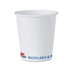 Thick single wall cup. Natural card material. Disposable cups which can be recycled. Cups are paper based, with a water based inner lining. Capacity: 7oz. Colour: White. Pack of 1000.