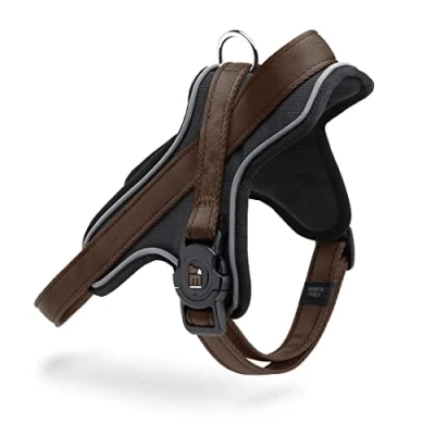 MyFamily Dog Harness Made in Italy, Personal Data of Your Always with You, Smartphone Connection NFC Technology, Model K, Memopet Collection (From 60 to 80 cm, Brown)