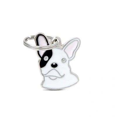 MyFamily Personalised Dog Tag Made in Italy, White French Bulldog, with Free Engraving, Hand Enamelled Metal, Friends Collection, 26 x 27 mm