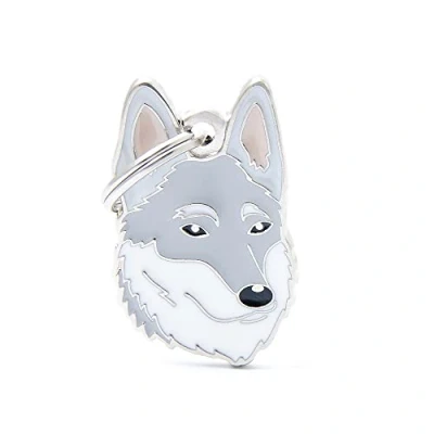 MyFamily Personalized Dog ID Tag Made in Italy, Czech Wolf, Free Engraved Tag, Hand Enameled Metal, Friends Collection, 24x38mm