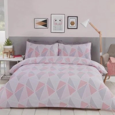 Modern Geometric Style: Elevate your bedroom with the Rapport Home King duvet cover set, featuring a chic geometric triangle pattern in contemporary pink, grey, and white shades. Perfect for a stylish update. Premium Polycotton Comfort: Crafted from a soft and durable 48% cotton, 52% polyester blend, this bedding set offers breathable comfort and long-lasting quality. Enjoy easy care and a cozy night's sleep. Complete King Bedding Set: Includes one King duvet cover (230x220 cm) and two matching pillowcases (50x75cm), providing a coordinated look for your bed. Vibrant & Versatile Decor: Ideal for girls' rooms, teen bedrooms, or anyone seeking a fresh, modern aesthetic. The reversible design allows for versatile styling options. Rapport Home Quality: Trust in Rapport Home for stylish, high-quality bedding that combines modern design with everyday practicality, ensuring a delightful addition to your home.