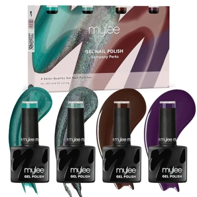 Company Perks - Level up your office game with this Gel Polish set. Featuring Chocolate Digestive, Suited & Booted, Work Drinks, and Water Cooler Gossip, this quartet adds flair to your workday look. From sweet sophistication to after-work vibes, each shade brings its own charm. Apply over our Base Coat and seal with one of our Top Coats. No more waiting around for paint to dry – cure in seconds with an LED or UV Lamp and conquer the world with confidence UK Brand - Mylee Gel Polish is carefully formulated for salon professionals and at-home users alike; all 200+ shades are designed and assessed in the UK, and compliant with UK and EU standards Long-Lasting High Gloss Wear - Durable gel colour for up to 3 weeks without the price tag; expect no chips, smudges, nicks or dents. Suitable for use on natural nails, acrylic nails, false nails and tips. Mylee gel polish is easy to apply and requires curing under UV or LED lamp (sold separately) Flawless System - Pairs perfectly with the Mylee Base Coat and Top Coat and cures under LED or UV Lamp. Due to quality variances between different monitors, the colour that appears on your screen may differ from the physical product Vegan & Cruelty Free - Apply and wear with confidence knowing that Mylee is vegan and cruelty free. Suitable for both salon and home use, Mylee meets the needs of professionals, beauty technicians, manicure enthusiasts and beginners alike