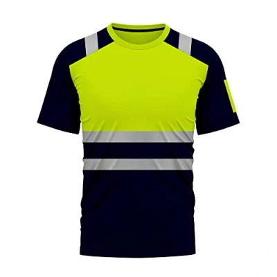 mymixtrendz Hi Viz Vis High Visibility Dri Fit Short Sleeves T Shirts Reflective Tape Safety Round Crew Neck Security Work Breathable Workwear Tops Yellow Navy