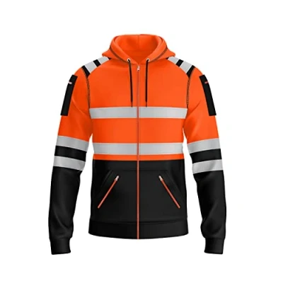 Mymixtrendz Mens Hi Vis Work Wear Zip Up High Visibility Hoodie Safety Reflective Tape Zipper Pockets Neone Yellow Orange Hooded Sweatshirt Top, Black, XXL