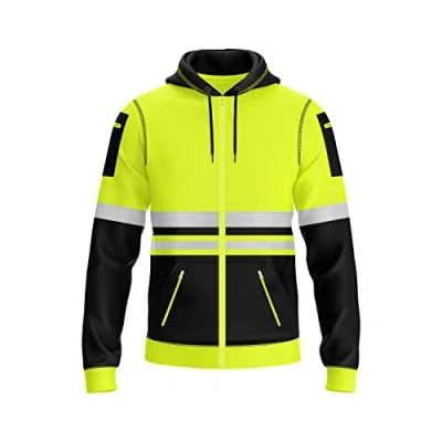 Amazon Mymixtrendz Mens Hi Vis Zip Up Multi Zipped Pockets Hoodie Safety Work Reflective Tape High Viz High Visibility Zipper Hoodie Sweatshirt S-XXL, Yellow Black