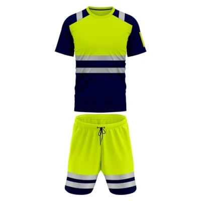 mymixtrendz Mens Hi Visibility Reflective Tracksuit Short Sleeve Drwastring Cord Elasticated Waist Pen Pocket Work Wear Saftey Tshirt Shorts 2 Piece Set