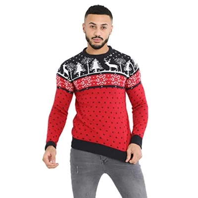 mymixtrendz Mens Knitted Xmas Rudolf Reindeer Snowflake Festive Deer Bambi Christmas Jumper