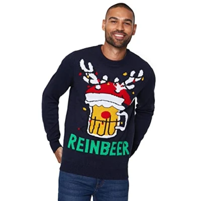 mymixtrendz Mens Knitted Xmas Rudolf Reindeer Snowflake Festive Deer Bambi Christmas Jumper (M, Antler Navy)