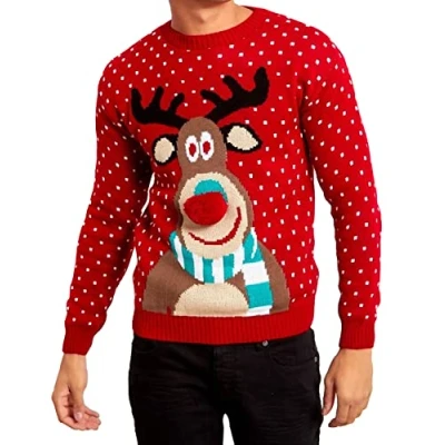 mymixtrendz Mens Xmas Novelty Knitted Christmas Reindeer, to The Pub Jumper Size S 2XL Red
