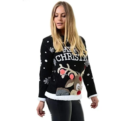 Women Xmas Christmas Jumper Sweater Snow Flake Reindeer Details Pullover Long Sleeves Soft Warm Knitted Jumper Machine Washable