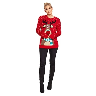 mymixtrendz Women Ladies Xmas Reindeer Snowflake Long Sleeves Christmas Jumper Sweater Top (3XL (UK 24 26), Red)