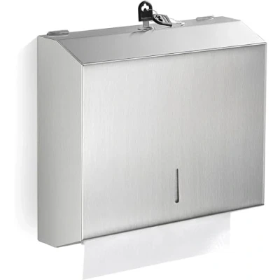 Sturdy And Large Capacity: The paper towel dispenser is made of durable SUS304 food grade stainless steel, rust and water-resistant, large capacity for 300 folded paper towels(smaller than 10"-basically available on the market), wide outlet design for smoothly dispensing. Easy-To-Use Design: A visible window on the front allows for timely refilling of paper towels. The locking design prevents damage as well as dust from getting inside the commercial paper towel dispenser. Smooth finish surface is easy to clean. Curved Exit Design: Stainless steel tissue holder curved exit facilitates smooth pulling out of paper towels and prevents them from getting stuck, reduce waste and prevent tearing. The Paper towel dispenser is also not easy to scratch hands. Easy To Install: Just a few minutes to install, very convenient, and the paper towel dispenser wall mount is heavy duty and good-quality, good texture and appearance to fit your space. Wide Application: Suitable for commercial institutions and public groups such as train stations, restaurants, beauty salons, cinemas, hotels, hospitals, medical institutions, office buildings, etc.