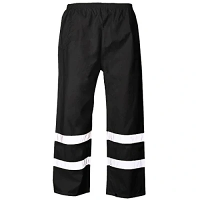 MyShoeStore Hi Vis Viz 2 Band Pu Over Trousers High Visibility Waterproof Safety Work Wear Reflective Tape Stripe Elasticated Waistband Bottoms Workwear Pants(Black, 3XL)
