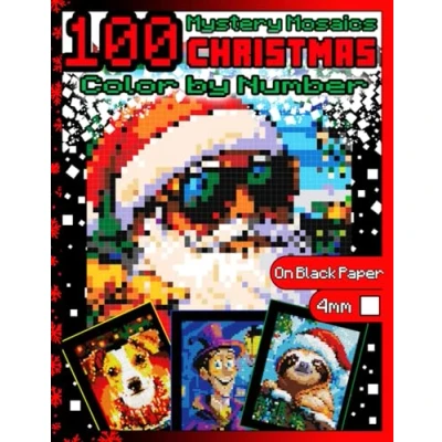 Mystery Mosaics Color by Number: 100 Christmas Characters: Pixel Art Coloring Book with Dazzling Hidden Characters, Quest on Black ... Relief, Large print Number 4mm Squares