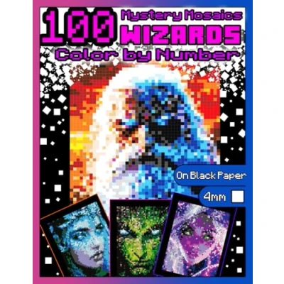 Mystery Mosaics Color by Number: 100 Wizards: Pixel Art Coloring Book with Dazzling Hidden Magical Figures, Quest on Black Paper, Extreme ... Relief, Large print Number 4mm Squares