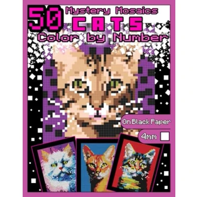 Mystery Mosaics Color by Number: 50 Cats: Pixel Art Coloring Book with Dazzling Hidden Cat Breeds, Quest on Black Paper, Extreme Challenges for ... 3 (Mystery Number Animals)