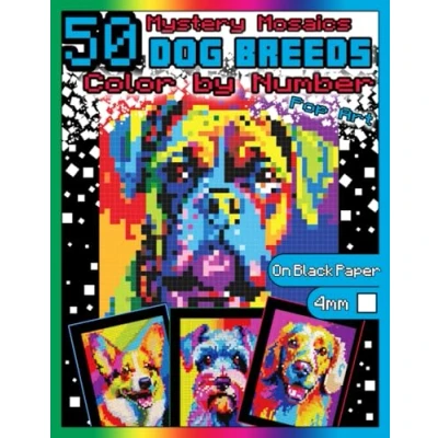 Mystery Mosaics Color by Number: 50 Dog Breeds (Pop Art): Pixel Art Coloring Book with Dazzling Hidden Breeds, Quest on Black Paper, Extreme ... Number Pop Animals)
