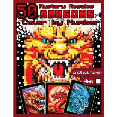 Mystery Mosaics Color by Number: 50 Dragons: Dragon Coloring Book for Adults with Dazzling Hidden Dragons, Quest on Black Paper, Extreme ... (Mystery Number Animals)