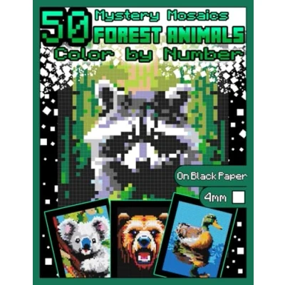 Mystery Mosaics Color by Number: 50 Forest Animals: Pixel Art Coloring Book with Dazzling Hidden Animals, Quest on Black Paper, Extreme ... 6 (Mystery Number Animals)