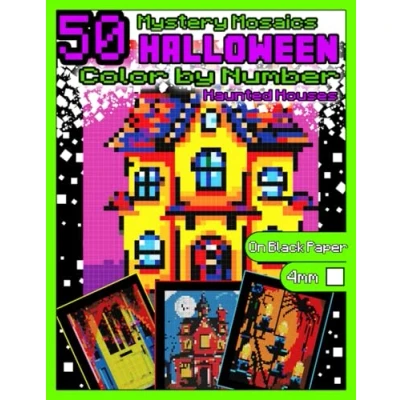 Mystery Mosaics Color by Number: 50 Halloween Haunted Houses: Pixel Art Coloring Book with Dazzling Hidden Spooky Houses, Quest on ... 4mm Squares (Halloween Number)