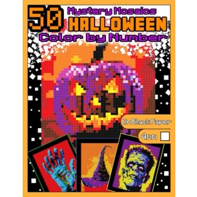 Mystery Mosaics Color by Number: 50 Halloween: Pixel Art Coloring Book with Dazzling Hidden Halloween Pictures, Quest on Black Paper, Extreme ... 4mm Squares (Halloween Number)