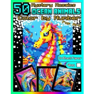 Mystery Mosaics Color by Number: 50 Ocean Animals (Pop Art): Pixel Art Coloring Book with Dazzling Hidden Animals, Quest on Black Paper, ... Number Pop Animals)