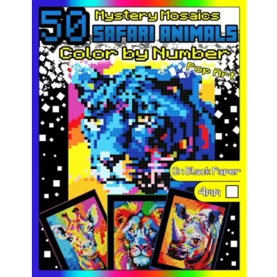 Mystery Mosaics Color by Number: 50 Safari Animals (Pop Art): Coloring Book with Dazzling Hidden Animals, Activity on Black Paper, ... Number Pop Art Animals)