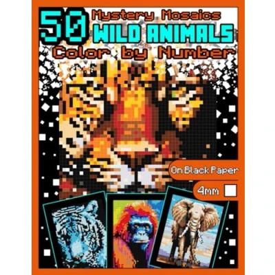 Mystery Mosaics Color by Number: 50 Wild Animals: Number Animals Coloring Book with Dazzling Hidden Animals, Quest on Black Paper, ... 8 (Mystery Animals)