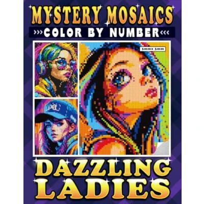 Mystery Mosaics Color By Number Dazzling Ladies: Pixel Art Coloring Book for Adults and Teens Quest of Enchanted Elegance Relaxation Stress Relief