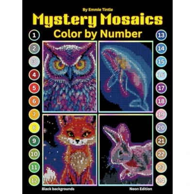 Mystery Mosaics Color by Number: Glowing Designs for Adults Featuring Hidden Animals and Black Backgrounds Stress Relief Fun
