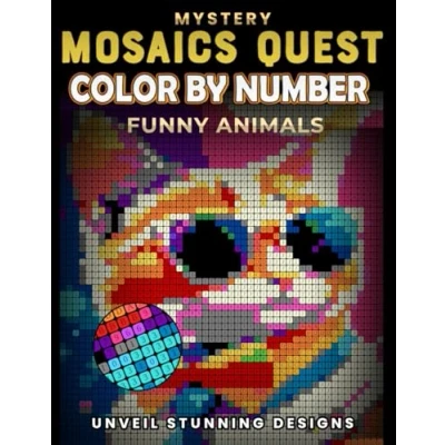 Mystery Mosaics Quest Color By Number Funny Animals: Unveil Amazing Pixel Art Designs Relaxing and Fun Coloring Book for Adults & Teens