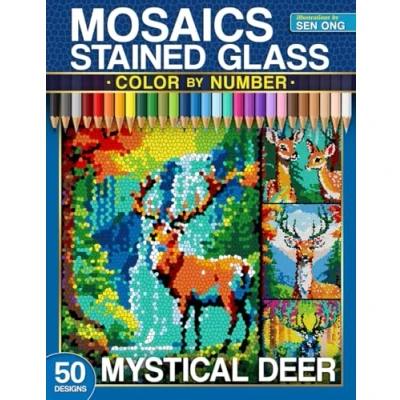 Mystical Deer Stained Glass Mosaics Color by Number: 50 Stunning Scenes of in Mysterious Woodland Landscapes