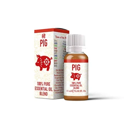 Mystix London Pig Chinese Zodiac Essential Oil Blend 10ml 100% Pure & Natural Aromatherapy for Knowledge Kindness Basil, Cedarwood, Clary Sage, Lavender, Orange, Tangerine Vegan, GMO Free