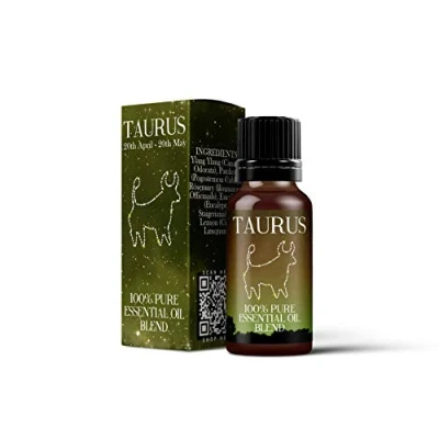 Mystix London Taurus Zodiac Sign Essential Oil Blend 10ml 100% Pure & Natural Aromatherapy for Earth Signs Eucalyptus, Lemon, Patchouli, Rosemary, Ylang Vegan, GMO Free