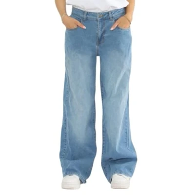 MYT Womens Wide Leg Jeans Ladies Baggy Loose High Waisted Stretch Denim Pants Light Blue 24 Long