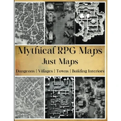 Mythical RPG Maps: Just Maps Dungeons, Villages, Towns and Building Interiors Black White (Table Top Game Maps)
