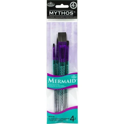 Mythos Mermaid 4 Piece Brush Set 4 Piece brush set, containing Round - 6 Shader - 2 & 6 Wash - 3/4" (19mm) Brush Care: Oils - Clean the brush with an odourless brush cleaner, removing as much colour as possible. wash thoroughly in soap and water then reshape with fingers. Acrylics & Watercolours - Wash thoroughly in soap and water, removing as much colour as possible and reshape with fingers. MPN MYTH 303
