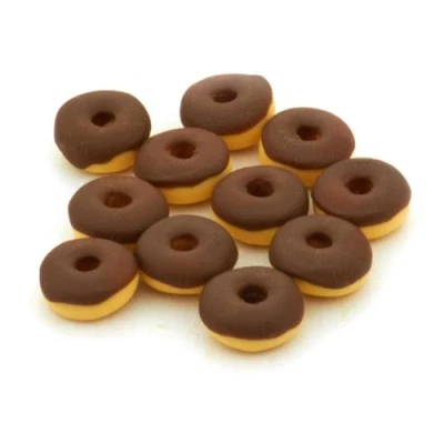 MyTinyWorld 8 x Dolls House Miniature Belgian Chocolate Iced Donuts