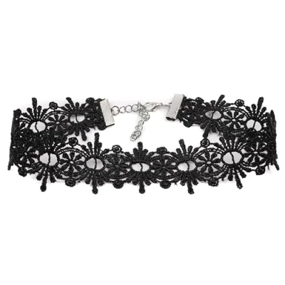 Mytoptrendz® 3cm Wide Black Crochet Choker Floral Design Ribbon Lace Collar Necklace for Women and Girls