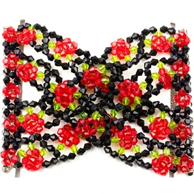 Mytoptrendz® Beaded Hair Combs Elasticated Clip Double Stretchy Comb Side Slides French Clips Womens Styling Accessories (Red multi)