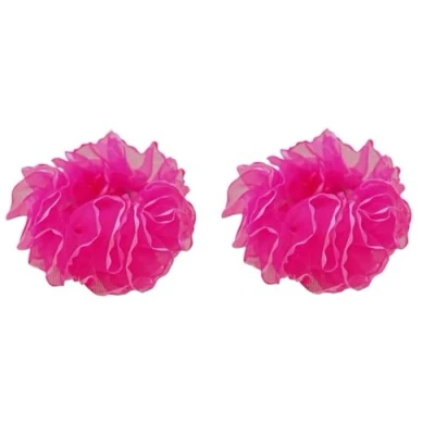 Mytoptrendz® Pink Chiffon Organza Ruffle Hair Scrunchies Bobble Ponytail Holder/Bun decor Set of 2