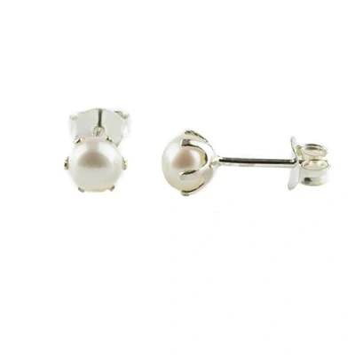 Mytoptrendz® Polished Sterling Silver Small Pearl Stud Earrings In Claw set 5mm 1 pair