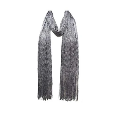 Mytoptrendz® Silver Grey Metallic Shawl Elegant Evening Party Wrap Lurex Scarf Lightweight Mesh Long Sparkly with Tassels
