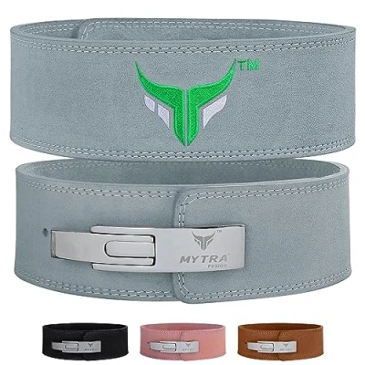 Mytra Fusion Leather weight lifting power back support belt men women weightlifting (Medium, Grey)